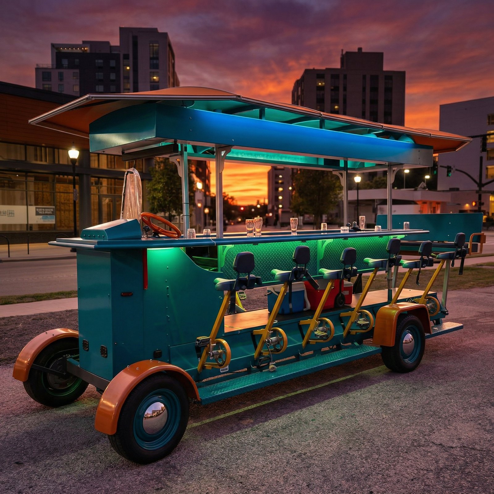 Exclusion: Gratuities, Alcoholic Beverages (Alcohol can be purchased from our on-site beer shop at reasonable prices. Customers can load them into our onboard coolers and drink as you pedal and party from bar to bar)